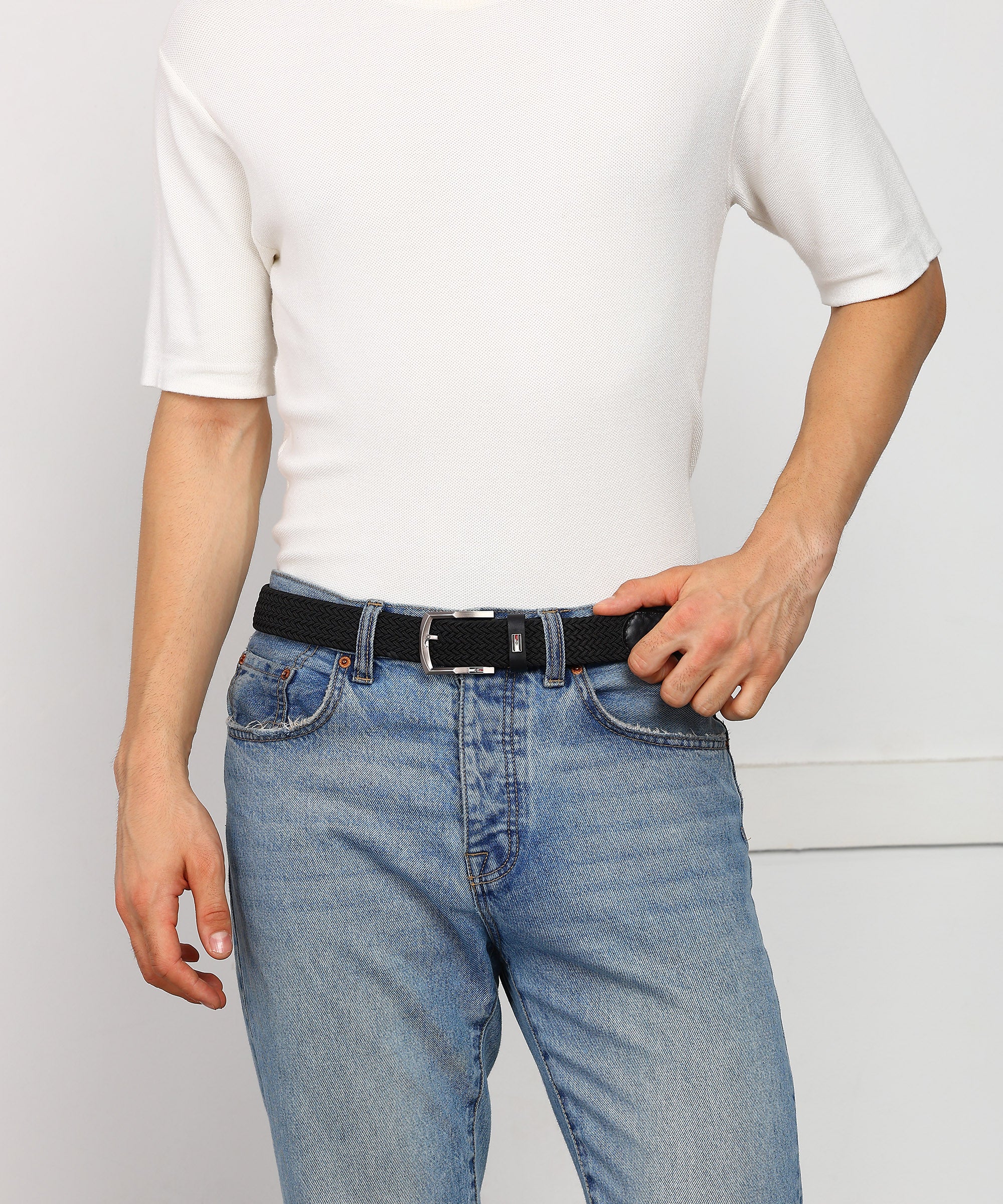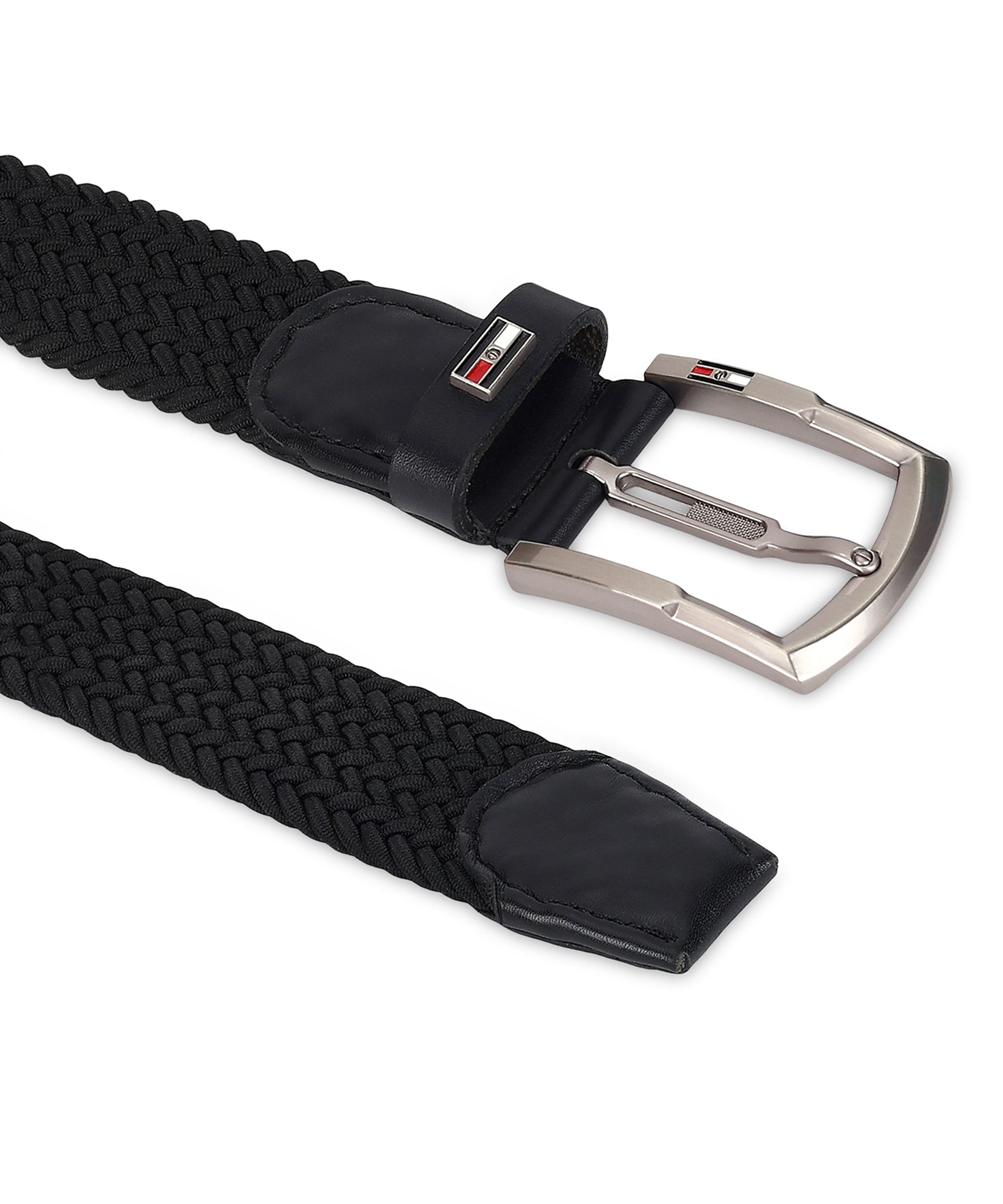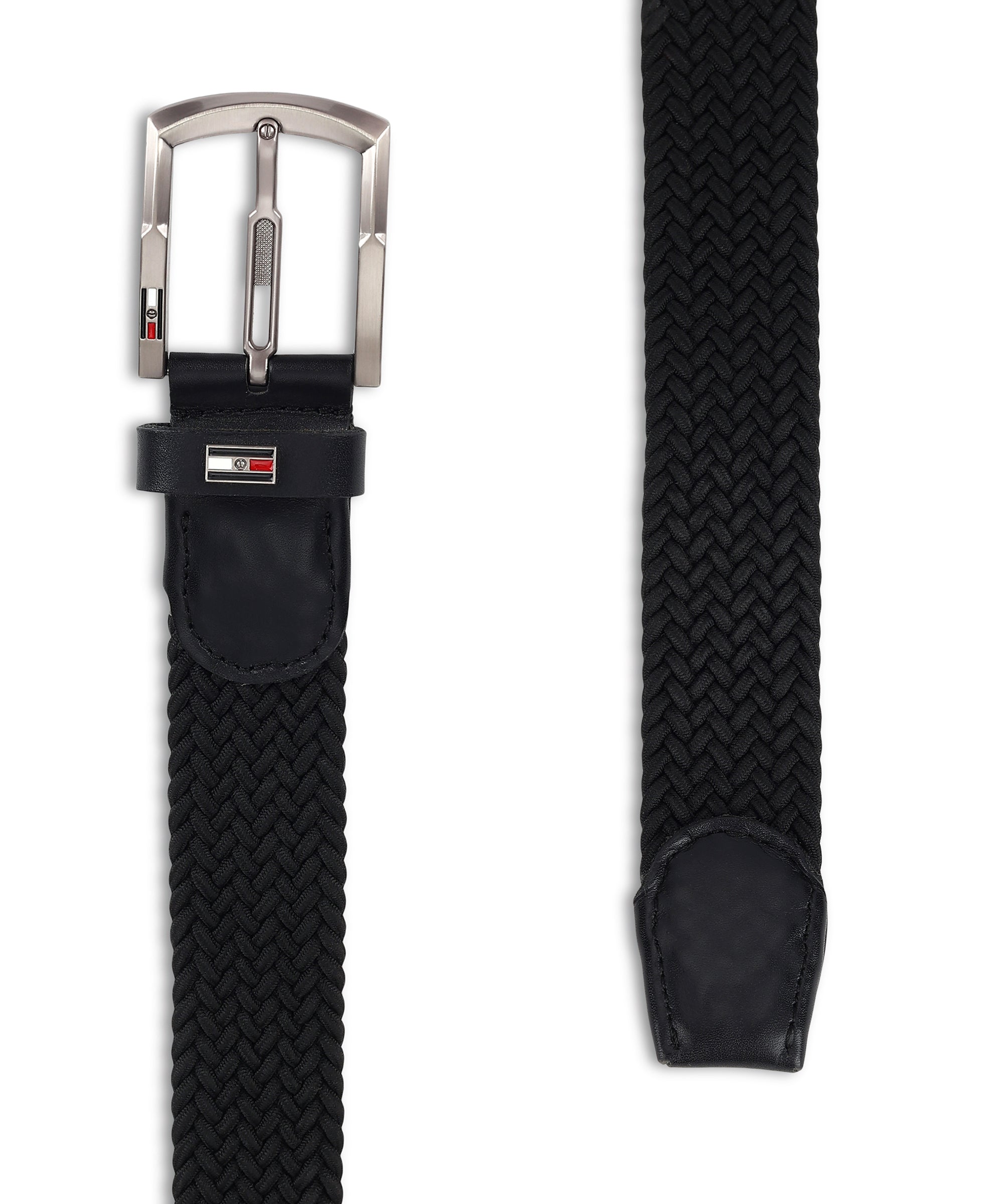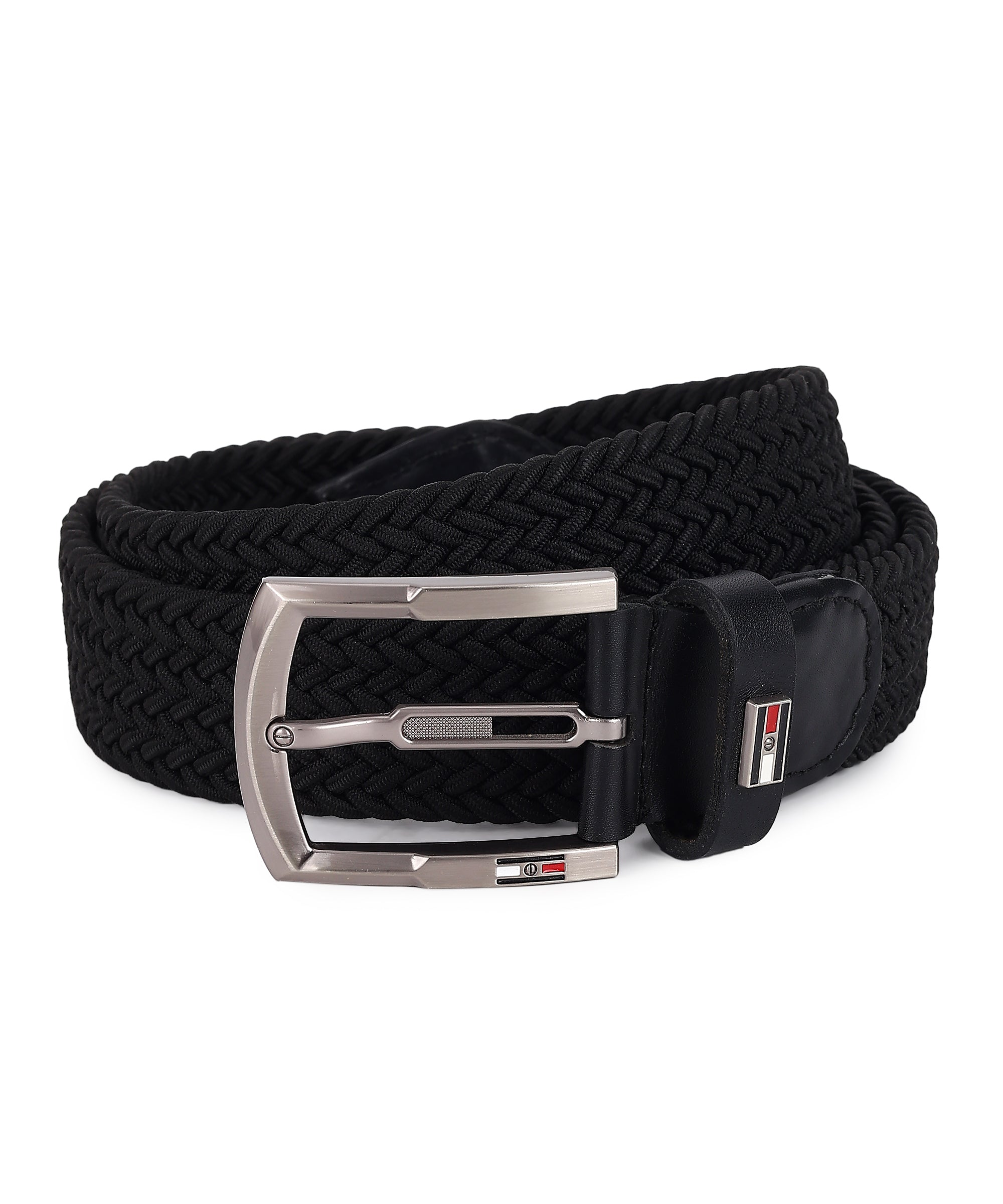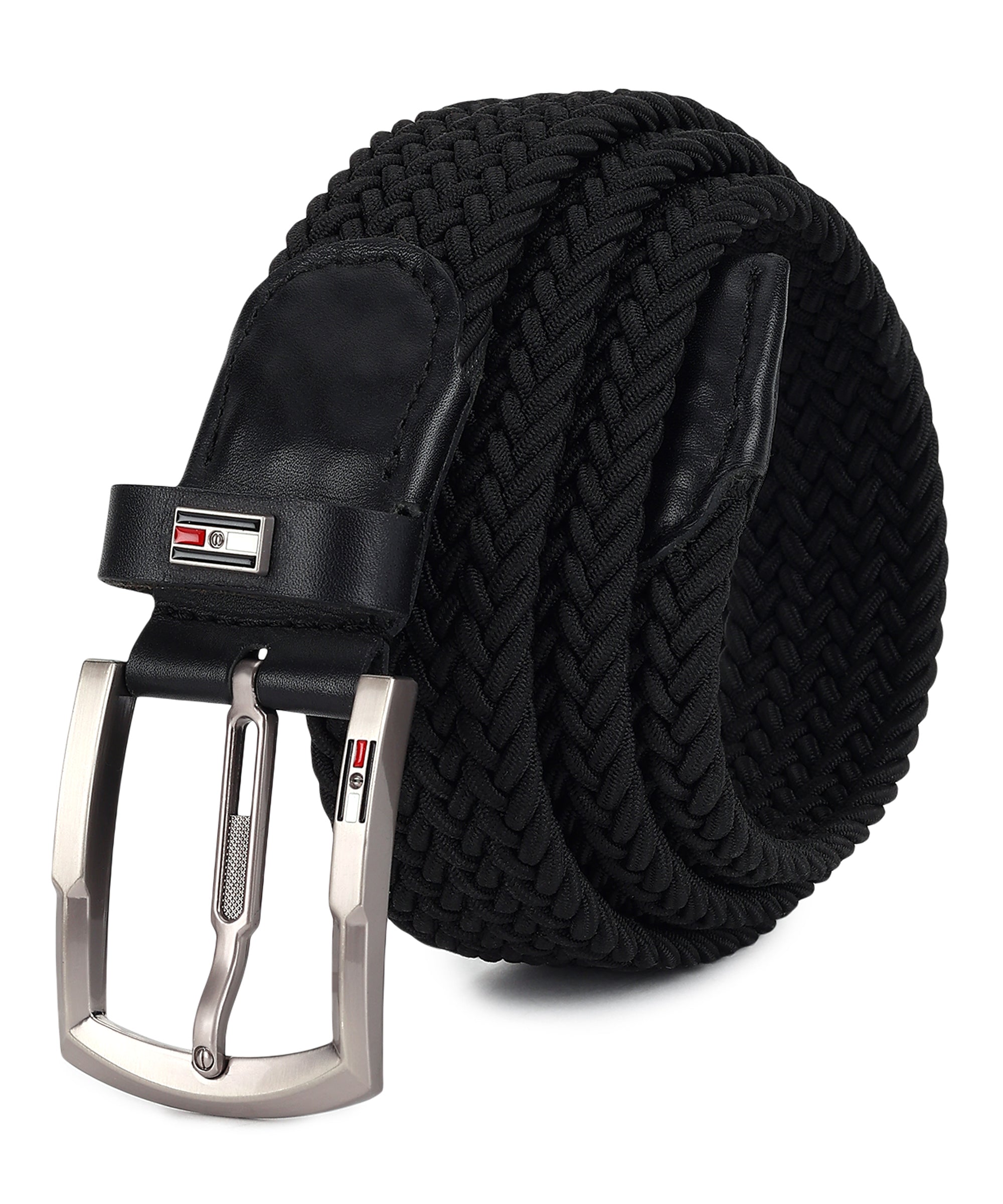 GIL Luxury Black Woven Stretch Men's Belt with Leather Detailing