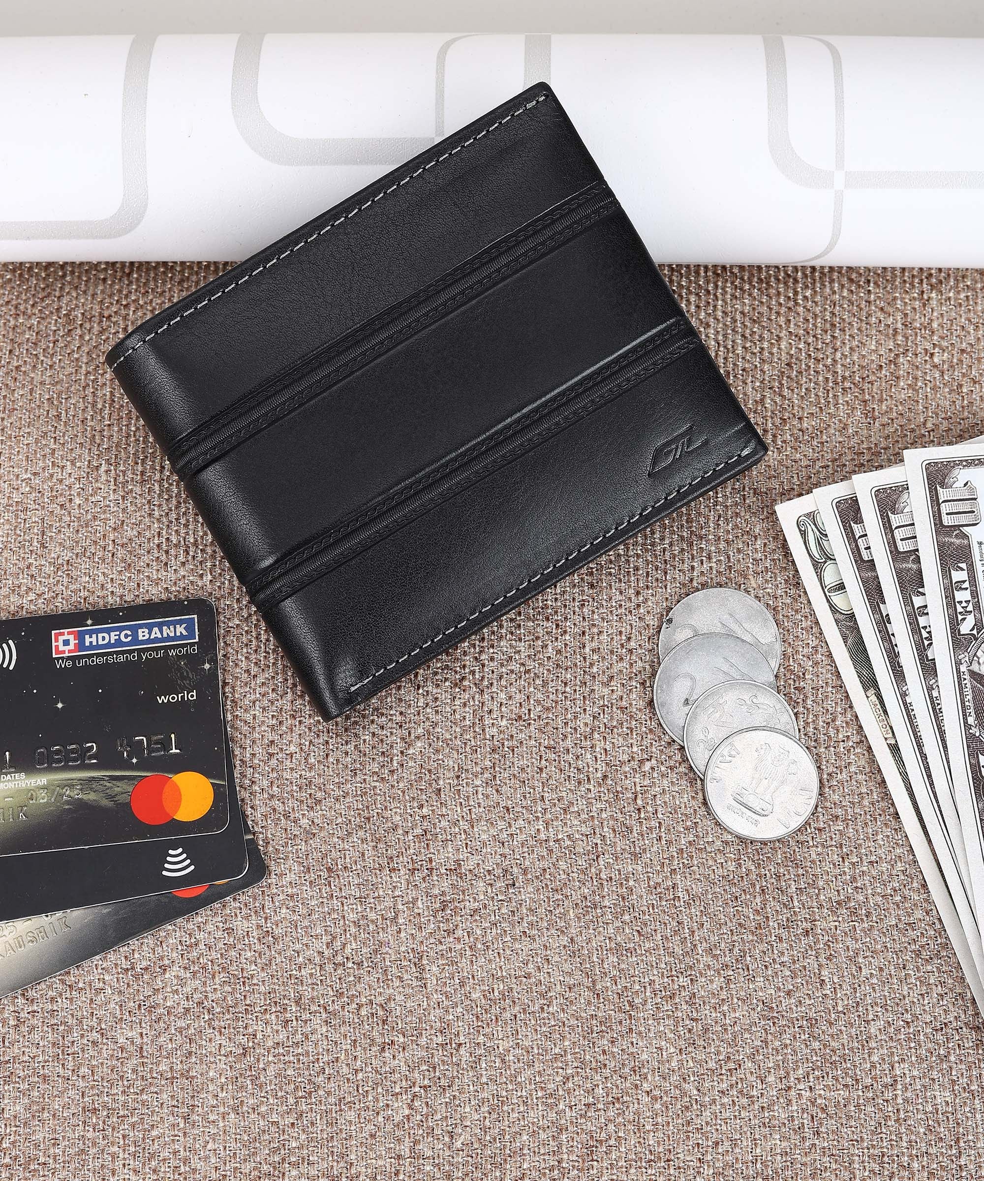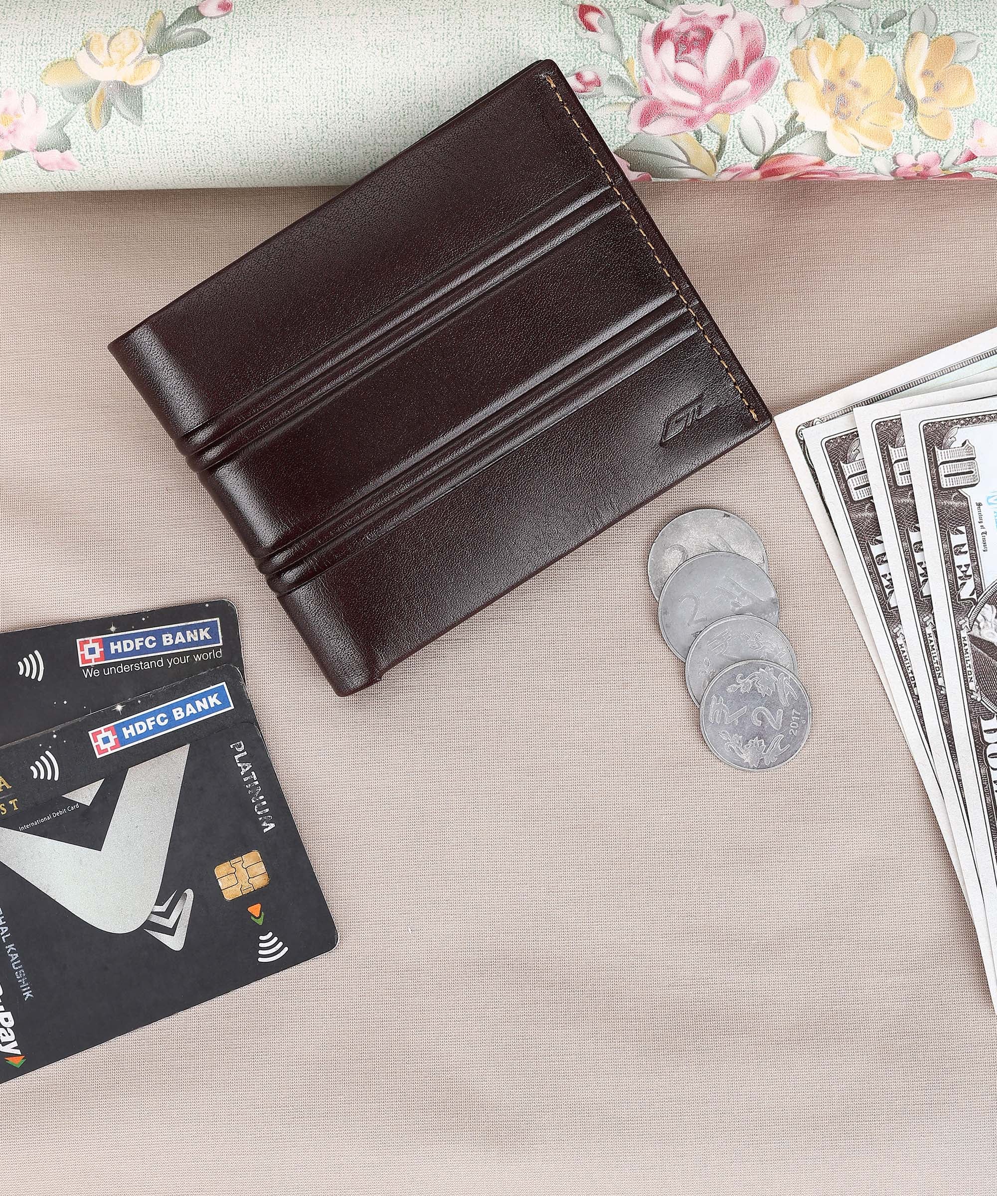 GIL Men's Bifold Leather Wallet with RFID | Embossed Full-Grain Leather